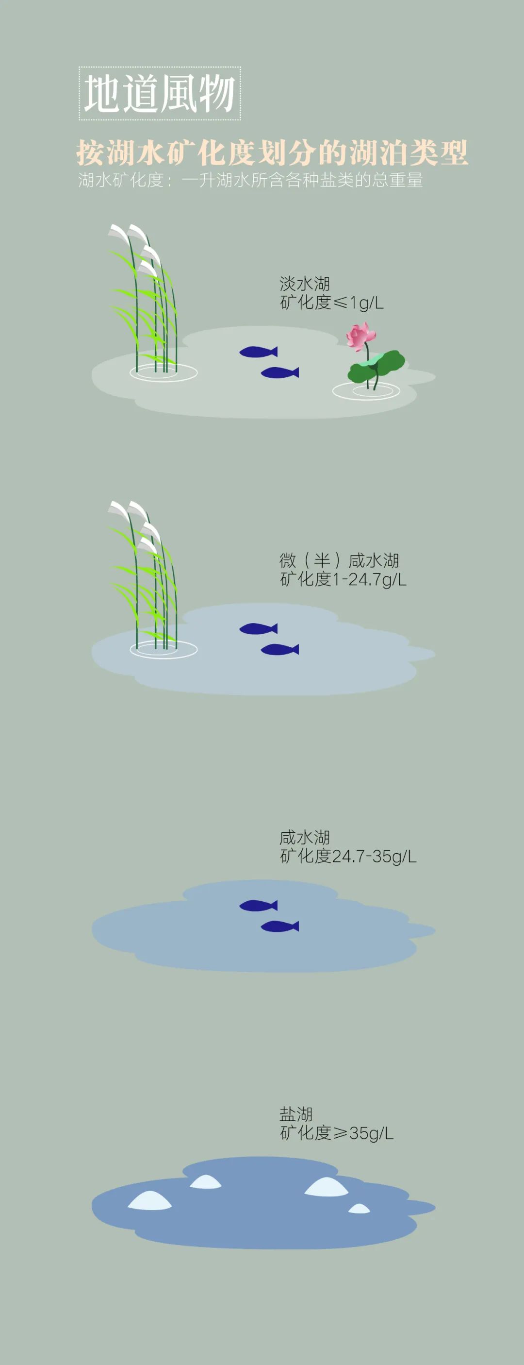 数亿万年间,各种地质作用塑造壮美河山的同时,也为中国塑造了大大小小24880个湖泊。其中深居内陆的湖泊,由于地形封闭,湖水不能外泄,盐分通过内流河不断进入湖泊,再加上多风少雨、蒸发量大的特殊气候,湖水越来越咸、盐分越积越多,久而久之,遂成咸水湖。