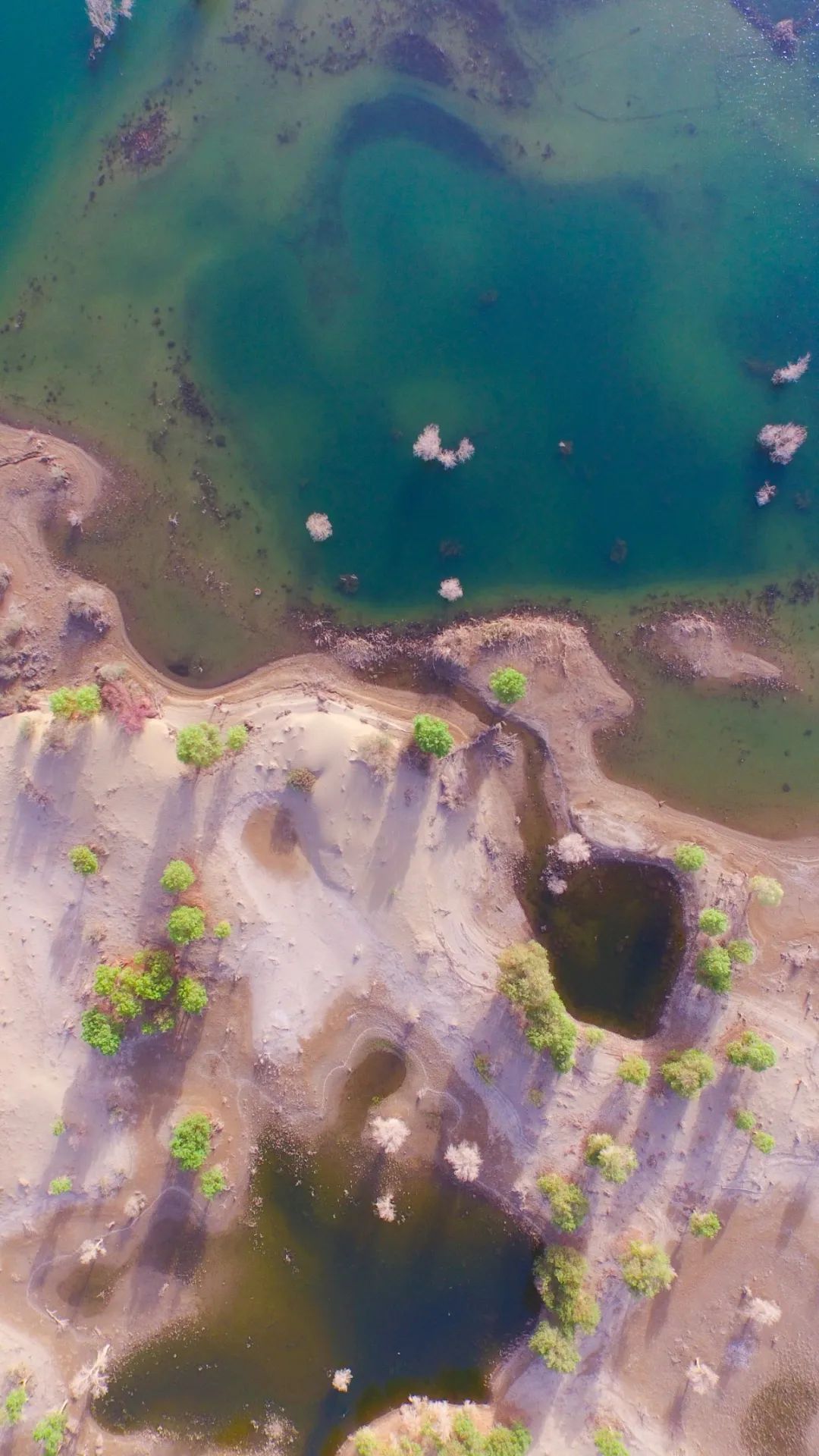 ▲ 内蒙古阿拉善沙漠中的达不苏湖景观。 图/视觉中国