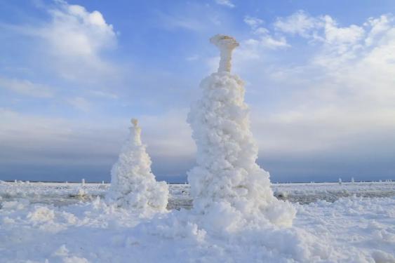 ▲ 察尔汗盐湖中的盐喀斯特地貌。 图/视觉中国