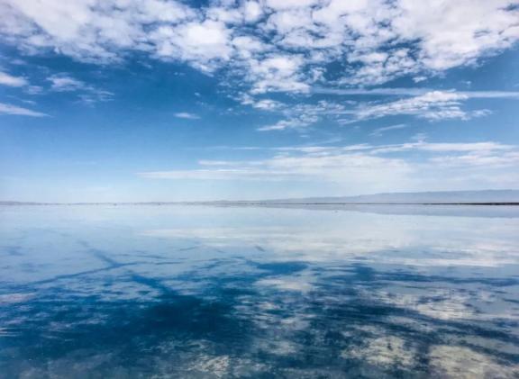 当这些丰富的盐类物质平整地分布湖底,光便均匀地反射出来,湖面于是成为一面巨大的镜子,倒映出白云蓝天,成为我们所向往的“天空之镜”——颜值,是盐湖最不缺的。