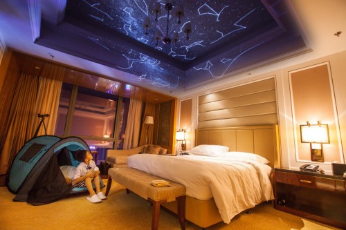 步入客房后,孩子将很快发现他们迎来的不仅是一间客房,而是一场真正的原野探奇之旅。除专属欢迎礼遇及开床服务外,他们还将得到小帐篷及小狮子玩具等专属装备。全新营地探险之旅更为孩子们带来前所未有的“仰望星空”体验,孩子躺在帐篷中将看到令人惊喜的闪闪繁星。