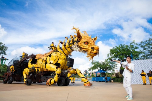 7月18日,记者在珠海长隆海洋王国看到,由著名亲子主持人李锐现场主持,世界独一无二的巨型机械艺术装置“龙马精神”在青少年的召唤下苏醒,再次踏上在珠海横琴的巡游之旅。同时,珠海长隆海洋王国宣布暑期大型特别项目《龙马亲子嘉年华》正式启动。