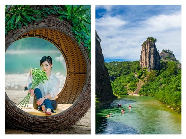 玉女峰下蜿蜒流动的九曲溪尽收眼底,让人忍不住用镜头记录此刻最纯粹自在的美好。这一站,在自然里无限想象,过一个惬意的时光。