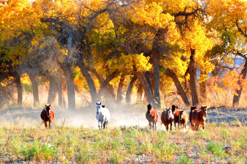 美的不可方物,或许是这片额济纳胡杨林惹来了造物主的“妒忌”,才让这份美丽的停留时间匆匆又短暂。额济纳胡杨林就这样猛然华丽,却惊艳着每个金秋。