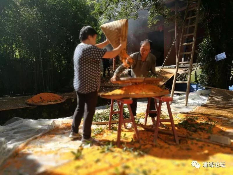 花开第二天的丹桂,而且是清晨日出前去抖落的,待晨露晒干后,桂花就不能自然抖落了。