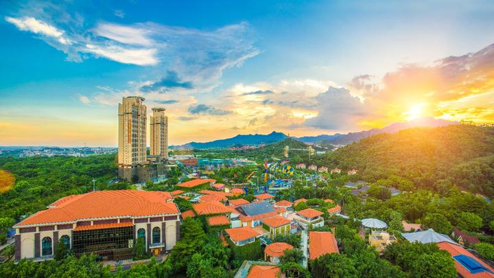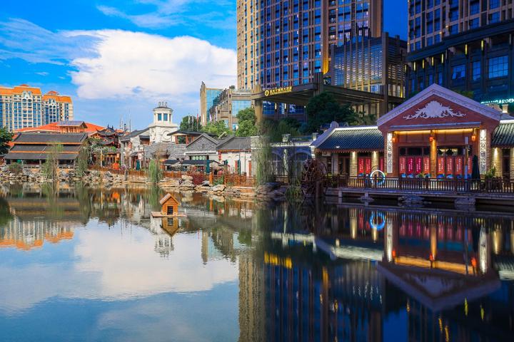 作为河源温泉名片之一,坐落于水晶山下的河源客天下国际旅游度假区,依托山、水、湖、泉打造了集全新温泉地标——温泉小镇。