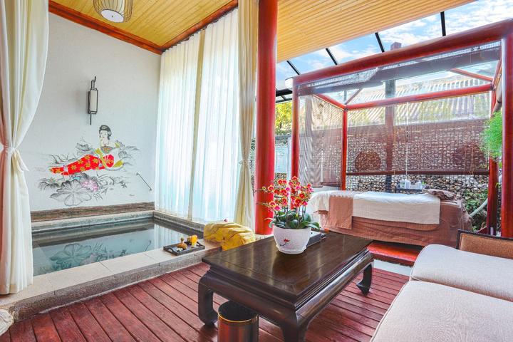 客天下水晶氡温泉以天然的水晶山与氡温泉为核心资源,以“世界沐浴文化”与建筑风格为主题,打造中国区、日本区、欧洲区等多个主题风情温泉沐浴体验。