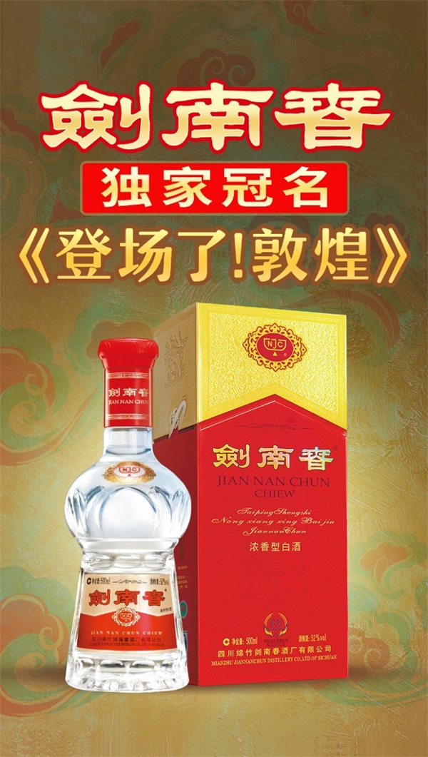 作为节目的总冠名商,此次剑南春携手敦煌共同“登场”。一边是承载着千年中华文明的繁华古郡,记录着时代兴盛,诉说着历史荣光。一边是千余年匠心传承的大唐御酒,绵延悠长,演绎着中国白酒的魅力。读懂中华文化之璀璨看唐朝,追寻唐朝之盛世繁华看敦煌,《登场了!敦煌》将以青春视角探寻历经千年的绚丽文明,以大唐御酒致敬历史,邀我们共品大美敦煌!