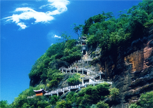线路二:停车场步行至东门,乘坐免费观光车至南门,游览石鼓寮风光,沿隧道经悬中寺上南岩,游览方岩山,后东门出园。