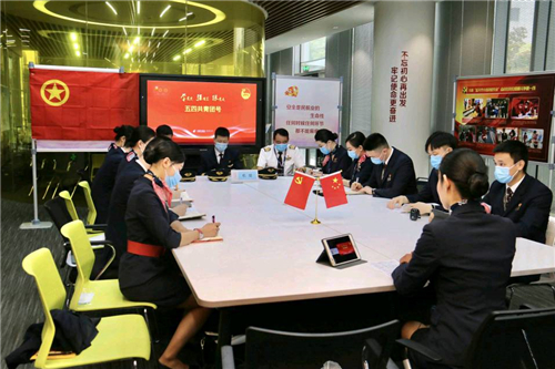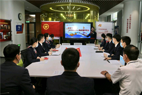 航前准备会上,东航客舱部“中共四大纪念馆”志愿讲解员张语桐,为大家分享了微党课《激荡1921-从中共四大人物故事学党史》。客舱经理黄烨娉、空保组组长陈龙,就航班上的安全和防疫要求进行了详细部署。