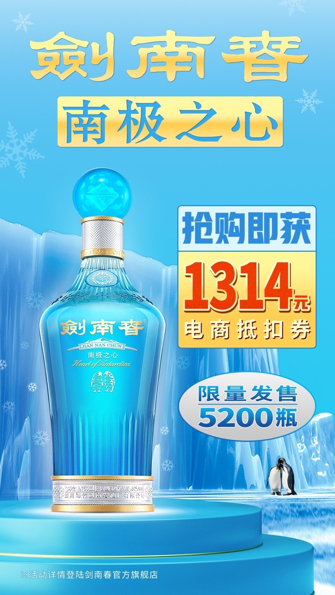 据剑南春官方消息,今年南极之心总共发售5200瓶,单价取一生一世的寓意定为1314元。为了让更多消费者有机会抢到,产品销售从6月1日到6月20日,可通过剑南春天猫及京东官方旗舰店购买,纵使这样,我们从部分消费者处获得的反馈仍是“很难抢”“蹲了很多天才买到”,可见其火爆程度。