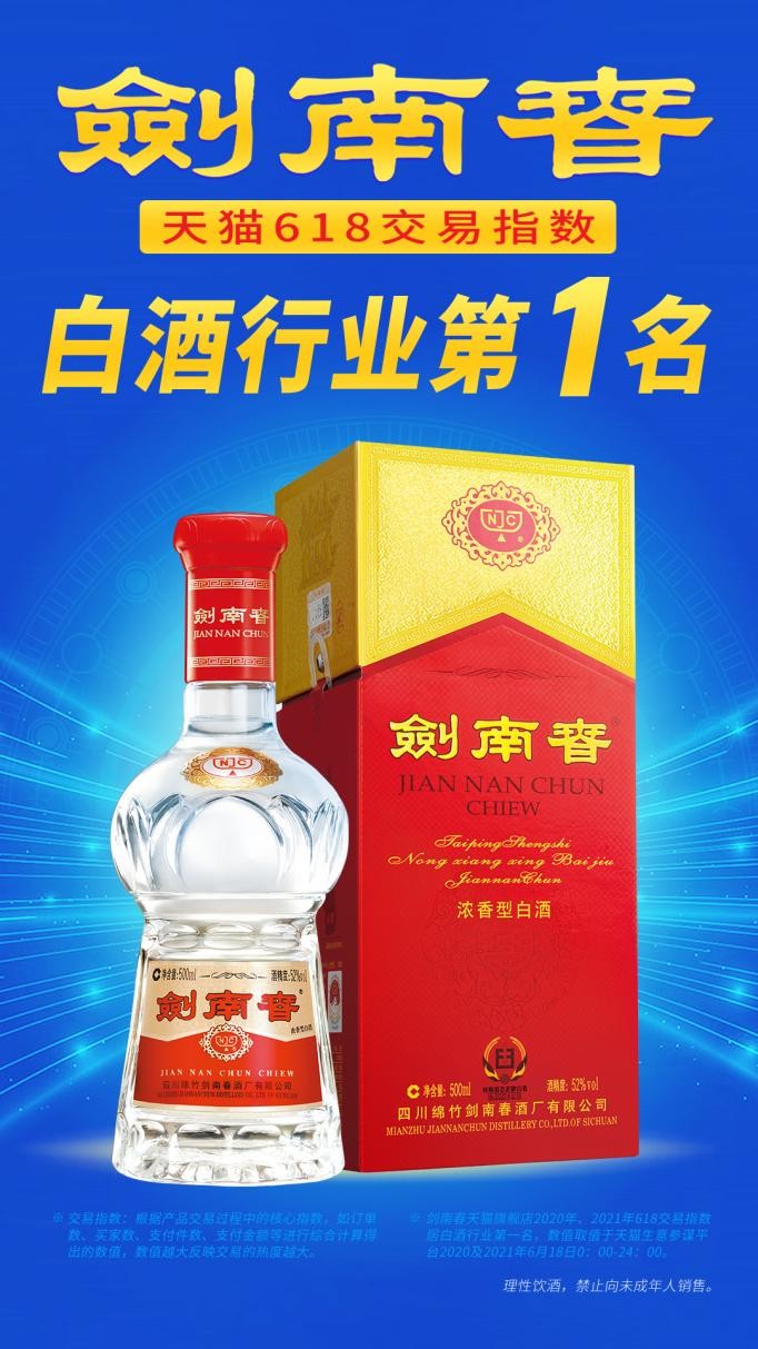 2020年,在整体商业环境较为严峻的情况下,剑南春呈逆势增长状态,2020年的“618”年中购物节期间,也获得了白酒品牌旗舰店交易指数第一名的好成绩。2021年,剑南春持续崛起,再次摘取桂冠,其不仅在渠道市场表现强劲,更是在高端布局方面取得新突破。