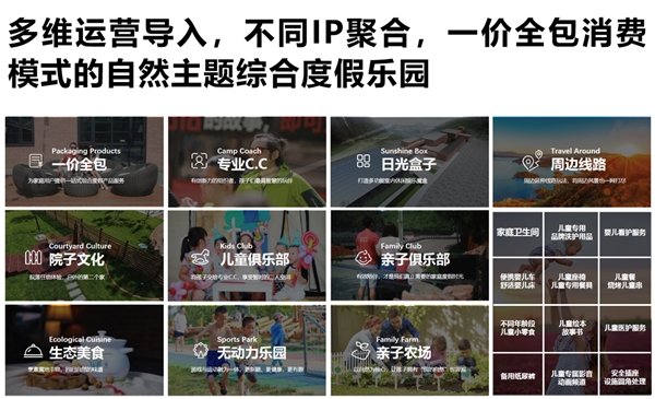 日光域集团旗下的营地乐园项目自成立之初,就区别于主题公园或亲子酒店,从消费者角度考虑,开创打造适合中国家庭的“一价全包”式营地乐园模式,带来餐饮、住宿、休闲娱乐一体化服务,让消费者尽情体验静谧、极致的休闲度假生活,致力打造中国家庭自然度假营地乐园第一品牌,并获得了众多游客的认可与好评。