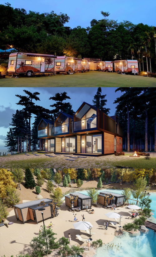 高要求的特色住宿产品在近两年成为市场的香饽饽,街景梦工厂在早已陆续推出了各种创意住宿产品:别墅式的房车,“太阳部落”式家族小院、装配式野奢酒店……根据当地的特点,景区可以自由选择搭配,短时间内就能搭建出体现当地风情的特色度假村。