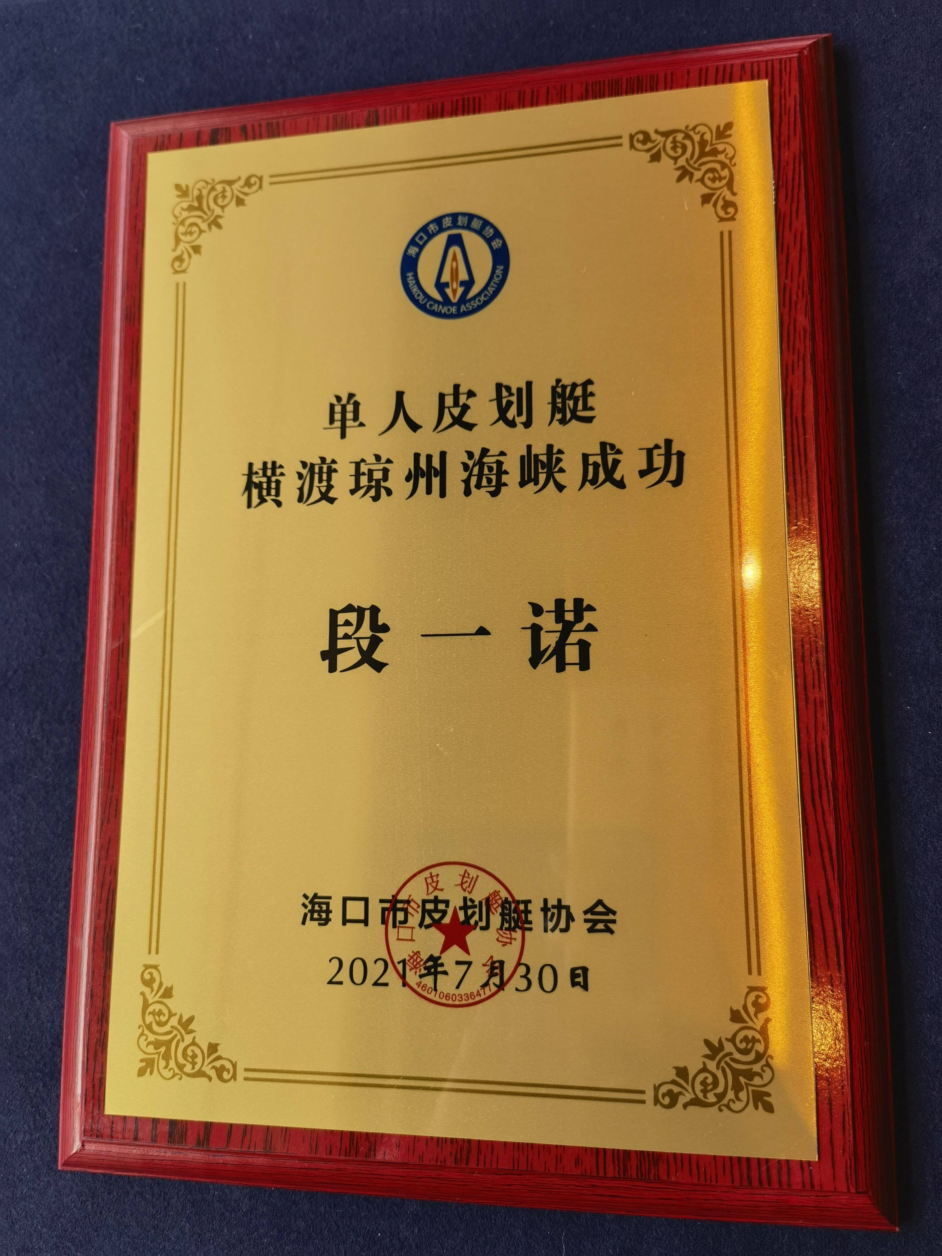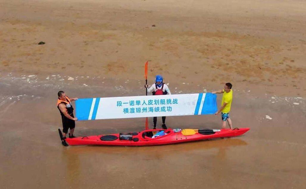 2021年7月30日,15岁北京市少年段一诺成功完成单人皮划艇横渡琼州海峡的挑战。早晨7点21分出发,10点56分成功登陆,全程耗时3小时35分钟,成为中国最年轻的单人皮划艇横渡琼州海峡挑战成功者。