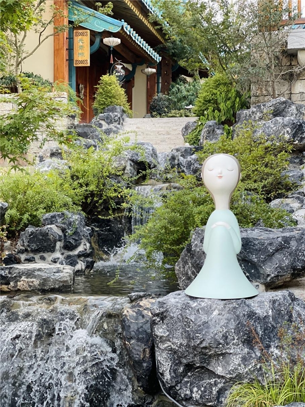 究竟什么符号能够代表金陵?为了解决这个问题,拈花湾文旅频频出入各大历史博物馆,直至在六朝博物馆中发现了微笑仕女俑。这一抹微笑,穿越千年依然给人如沐春风之感,通透、风雅,不正是金陵文化的魅力所在?在基础上打造“金陵微笑”这一文化符号,除此外拈花湾文旅还请来欧阳宁明老师、雕塑家李伟、刘知音夫妇,将“金陵微笑”重新演绎,在园区内的各处展示着金陵风雅。