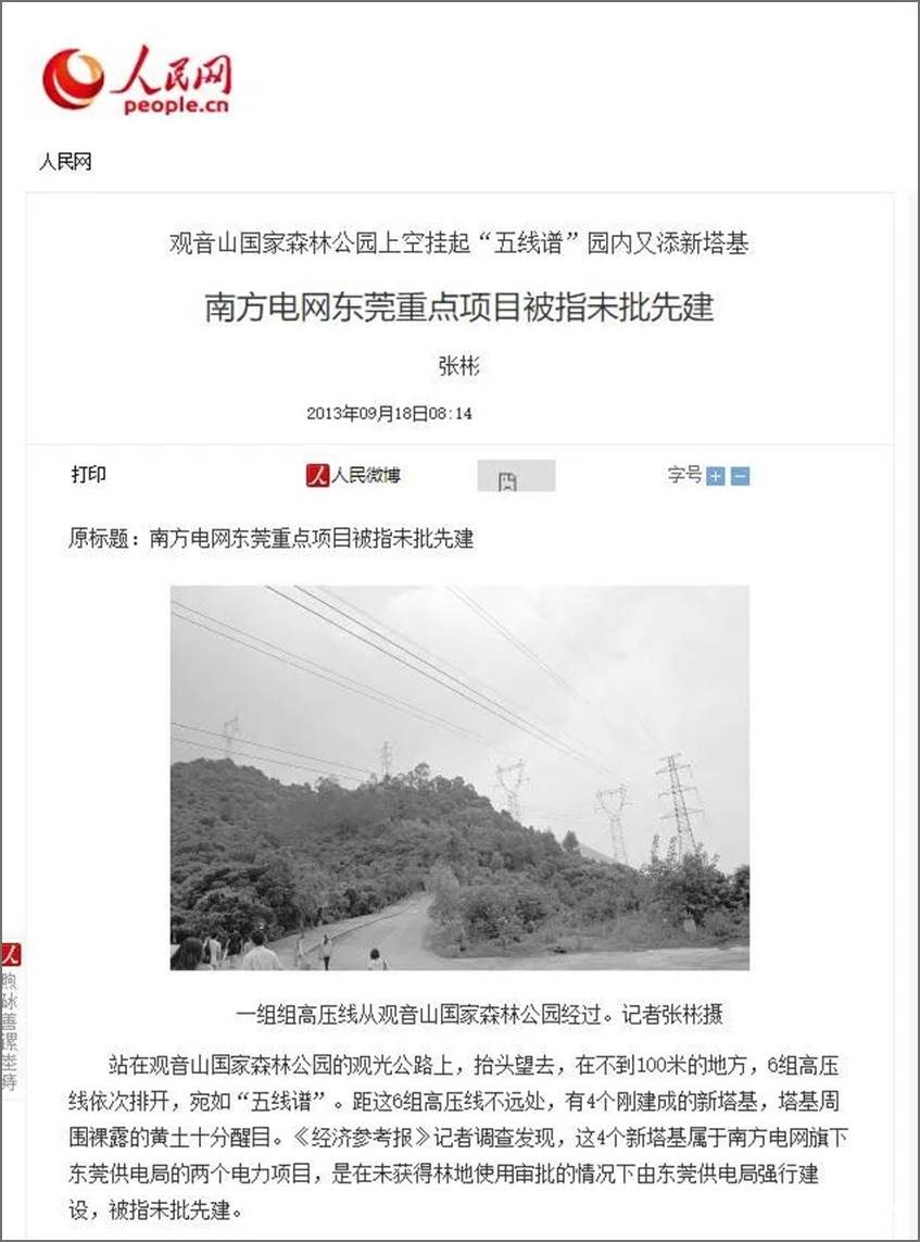 二、“高压线事件”回顾:未批先建的南方电网工程段