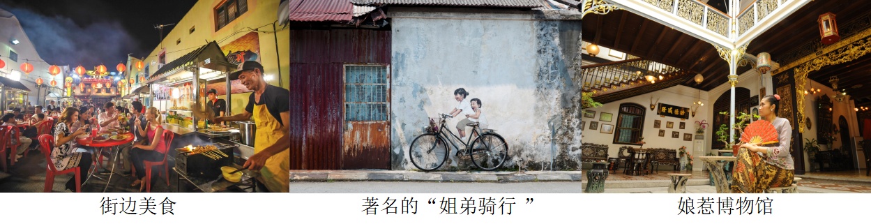 槟城是一个充满活力气息的城市。于2008年,槟城首府乔治市被联合国教科文组织纳入世界文化遗产名录。槟城不仅融合浓厚的东西方文化,还保留了英国殖民时期的建筑。漫游槟城,你将感受到它独特的魅力,同时槟城也是亚洲美食之都,无论是街边大排档、传统咖啡店、还是高级餐厅,这里的美食都足以与全球最佳美食相媲美。马来式、中式、印度式、泰式或娘惹菜肴都色香味俱全,深受各地美食家高度追捧。与此同时槟城也推出了“槟城岛屿的另一面”旅游宣传活动。希望游客除了享受槟岛小贩美食、古迹、和沙滩,也能从自然资源丰富的对岸威省,收获更多旅游体验。