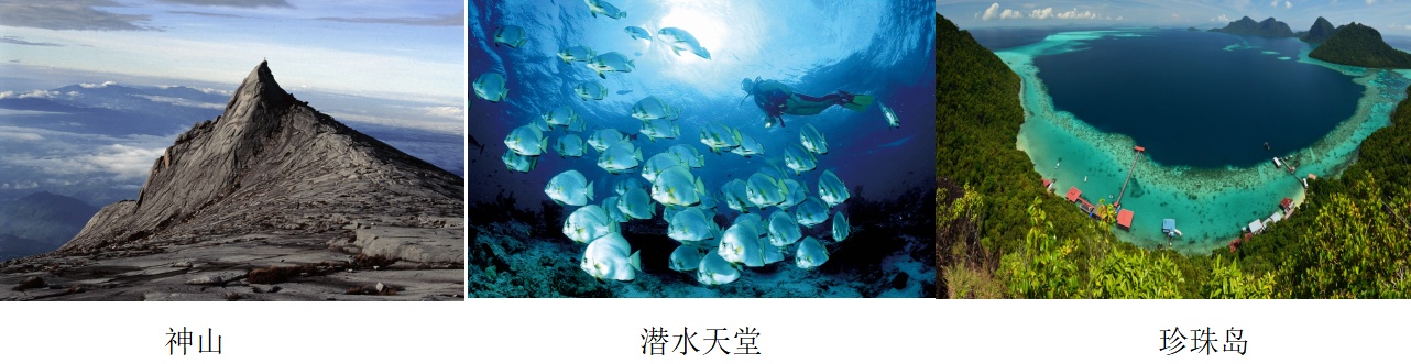 婆罗洲的风下之乡-沙巴。一座巍峨山峰冲出云端的地方,红毛猩猩在枝丫间恰意悬荡的地方、苏禄海和南中国海汇流的地方、多元民族同欢颂庆继承传统文化的地方。沙巴不仅仅是美食天堂还是潜水天堂。世界各地的潜水员竞相前来此处潜水,窥探这些美丽岛屿壮观海洋生态;被誉为世界顶尖潜水据点的西巴丹岛也在其中。不仅如此,神山公园,于2000年被联合国教科文组织列入马来西亚第一个世界大自然遗址,这里依地势高度的层次而蕴含生成超过四种气候带的动植物。