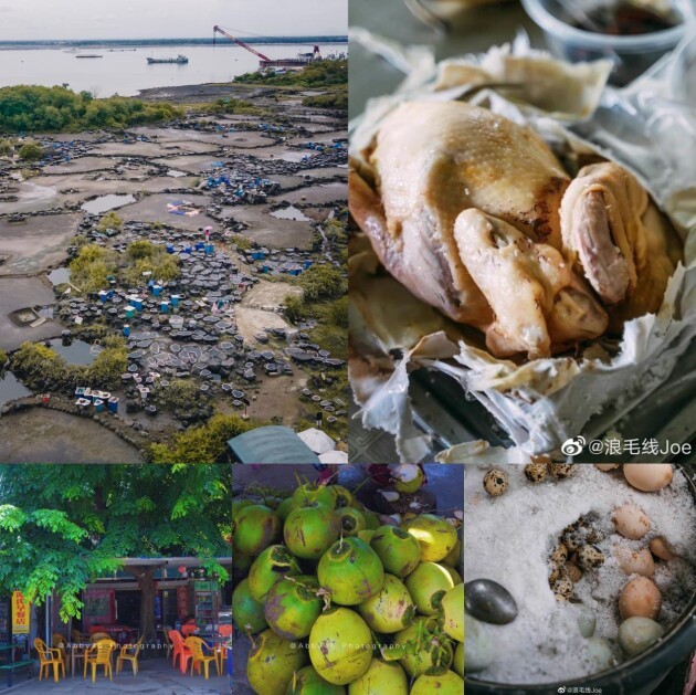 深处儋州,走进距今已有1000多年历史的洋浦盐田,近距离感受传统制盐工艺!寻一间温暖的小店,遇见口味相似的旅途人,品尝用老盐做出来的盐焗鸡、盐焗蛋,喝一口现开的冰镇椰汁水,不慌不忙,海南真好!