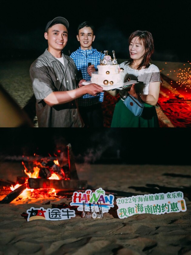 因之前了解有位团友的生日正好就在本次行程的时间中,途牛带着满满的诚意,给本次体验团准备了特别惊喜。在香水湾沙滩篝火晚会当天,特别定制了生日蛋糕,给团友度过了一个难忘的生日,感受来自途牛作为家人满满的爱。
