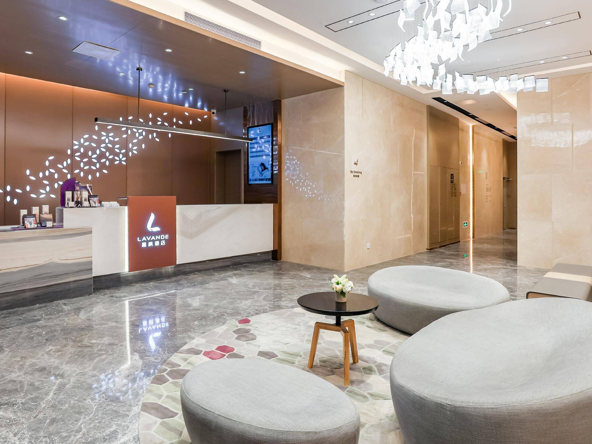品牌色的运用也对品牌会产生重要影响,在麗枫酒店,无论是视觉形象还是酒店环境,麗枫酒店将麗枫紫与薰衣草元素全面深度融合,打造了一个充满舒适与愉悦的自在空间。进入大堂,淡淡的薰衣草清香若有似无,萦绕四周。放眼望去,整体原木色泽与光影配搭,充满了柔和的气息。前台背景墙上的薰衣草花瓣透出点点的亮光,与摇曳的吊灯交相呼应,宛如置身浪漫的南法薰衣草花田,旅途中的浮躁与疲惫也渐渐被抚慰。