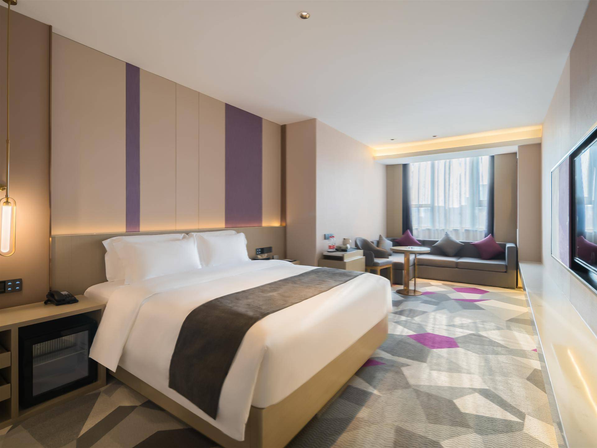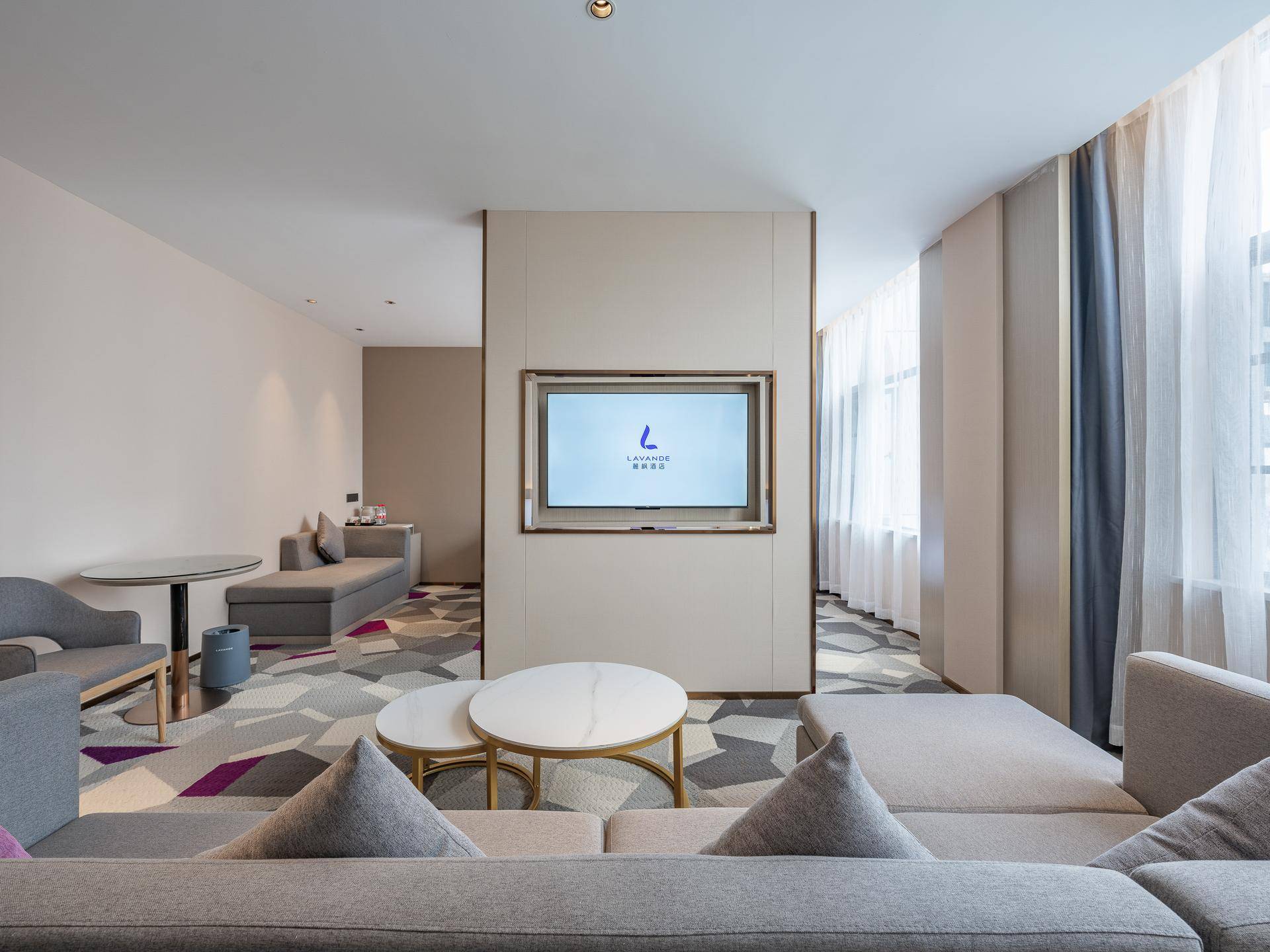 麗枫酒店将“自然自在”的价值主张融入到整个酒店空间,以香气、色彩和抽象化的薰衣草元素,树立了风格鲜明的品牌视觉。酒店整体以简约设计为主,无论是大堂还是客房均延续无压色调,第一眼就让人慢慢放松。大堂墙上的薰衣草花瓣光点、带有麗枫紫的地毯,简约又有辨识度的设计,更符合年轻人的审美。在公共空间规划方面,麗枫也进一步拓展除了住宿之外的需求,变成了集住宿、旅行、办公、生活等多种场景于一体的综合空间,住客在麗枫能尽情享受生活,让住酒店也变成自在旅途中的延伸。