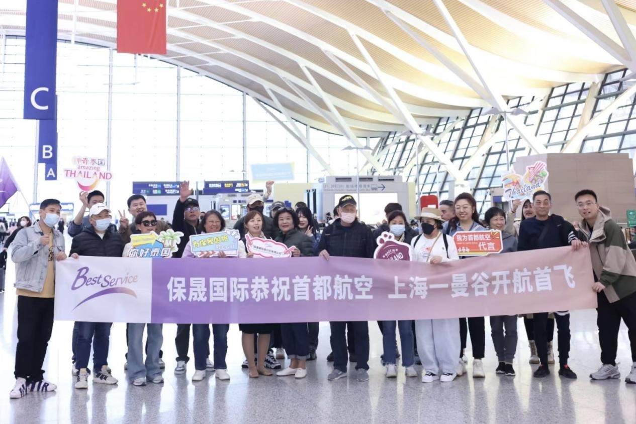 首都航空携手保晟国际于今日正式复飞上海-曼谷包机直飞航线的首航班机,喜迎上海曼谷JD航班首飞,为上海地区旅客出行带来更多便利,助力推动可持续旅游良性发展贡献出上海力量。