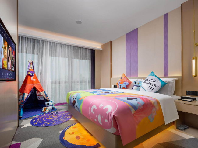 麗枫12星座麗小懒亲子房同样也可以承载你的童话梦想,充满童真的麗小懒是麗枫与年轻新星插画师铅笔君合作的打造的IP形象,当它不经意间出现在房间的抱枕、床盖、毛巾等等地方,还有梦幻童趣的星球地垫、星座帐篷,相信会让你瞬间感觉回到童年。