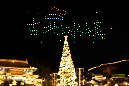 在古北水镇奇幻童话季期间,傍晚的无人机秀将定制专属画面,营造独属于冬天的氛围,点亮圣诞季!一组圣诞的无人机定制表演的现场照片祝您一臂之力,让您在朋友圈迅速占据C位!
