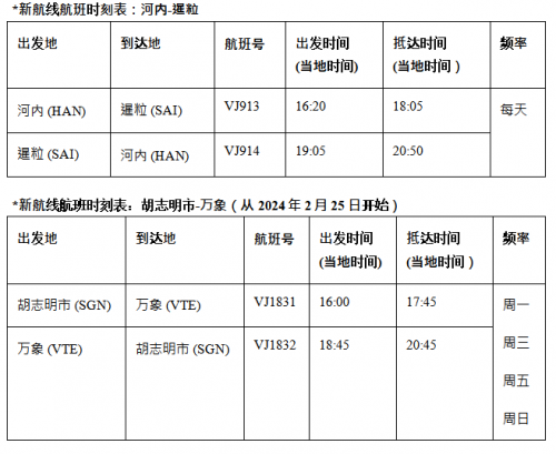 上海- Media OutReach Newswire - 2023年12月19日-在年末佳节和2024年新年到来之际,越捷航空开通了连接越南首都河内与世界文化遗产城市暹粒的航班。而另一条新开通的航线——胡志明市-万象也将于2024年2月25日首飞亮相。