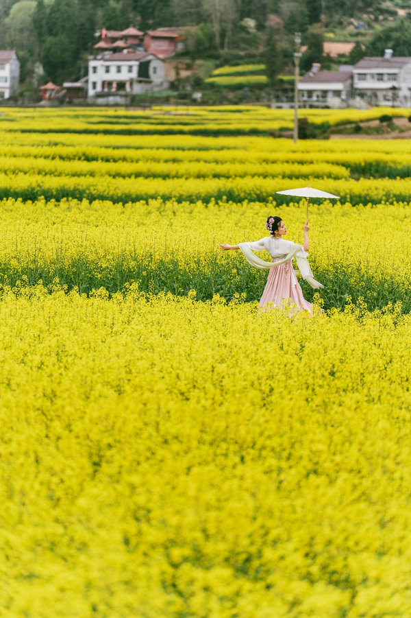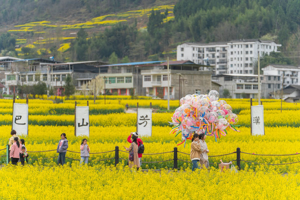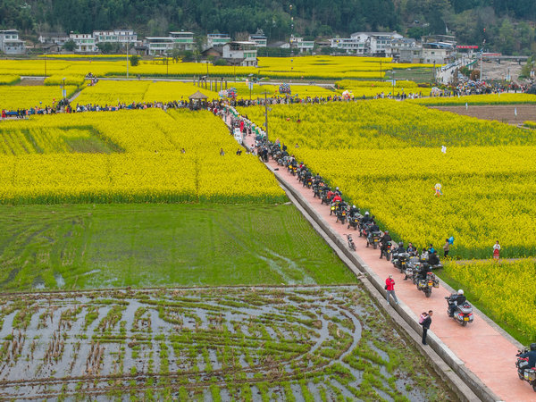 花海民歌会上,一望无际的油菜花海里,与十余位镇巴本土原生态民歌手引吭高歌,一展歌喉;黎坝长街家宴里,品鉴原汁原味的镇巴美食,眼睛和舌头收获双份的满足;花海村Beauty大赏时,汉服苗服轮番演绎人比花娇的靓丽春色……花田茶咖、花田小火锅、花田对歌、稻田摸鱼、机车巡游,到处是玩不完的福利,赏不尽的春光。让无数游客与大自然亲密接触的同时,感受镇巴田园生活的诗情画意。