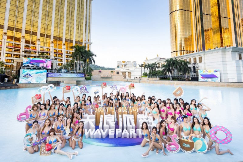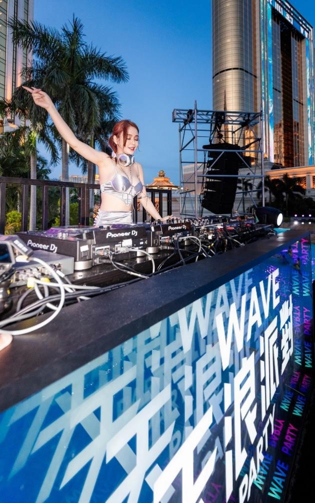 夕阳西下,150米长的白色沙滩上闪烁着金色的余晖,格外迷人。派对在澳门知名女DJ余凯欣的动感节奏中拉开序幕。随后,位列亚洲百大女DJ第8名Veena挥洒狂热节拍,大家随着旋律尽情舞动,欢笑交织;璀璨的镭射灯光在天浪淘园的上空交错,为空中冲浪池披上五光十色的外衣。在音乐的伴随下,各式佳肴应有尽有,海鲜、烧烤、甜点等美味轮番上阵,满足味蕾。