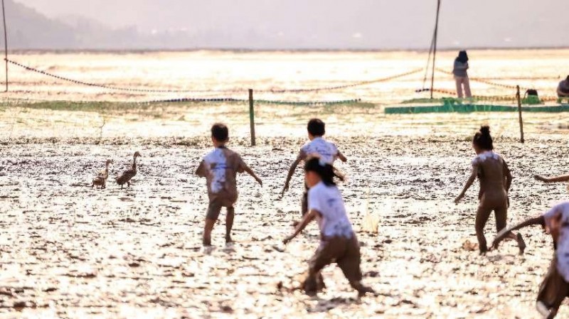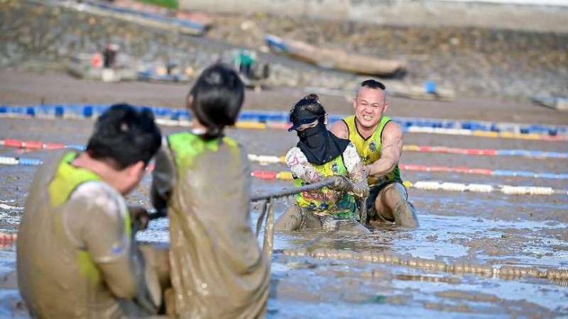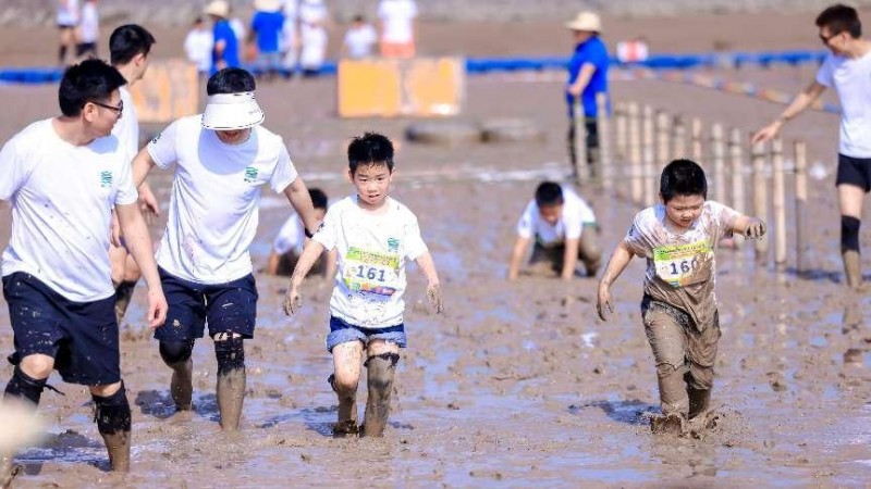 亲子体验组的内容多彩缤纷,亲子体验组滩涂障碍赛,按照儿童年龄分为(7-9周岁、10-12周岁)两个小组进行比拼。主办方特地设置了鱼跃龙门、穿越障碍、匍匐前进、沙桶搬运、胜利之矛、平衡木、爬绳网多项比拼项目。此外,全新的皮划艇体验、徒手捕鸭、摸鸭蛋等极具象山限定乐趣。万象山海,山海风情,绝美滩涂,国字号比赛大放异彩。