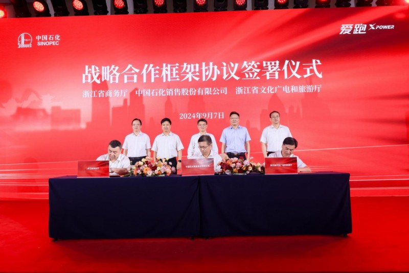 启动仪式上中国石化销售股份有限公司与浙江省文化广电和旅游厅、浙江省商务厅签订战略合作框架协议,中国石化浙江石油分公司与浙江省交通投资集团有限公司、浙江省文化产业投资集团有限公司战略合作框架协议。