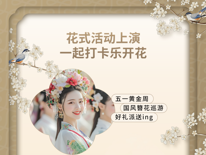 五一期间将在cdf海口国际免税城重磅推出首个国风美学空间——中免悦享花园,设置了三大互动打卡点“花容苑”、“祥铃亭”、“花韵亭”,策划了国风牡丹花使簪花巡游,为游客献上美好国风之旅。并与时代少年团演唱会开展线下粉丝应援会联动,打造“米爆一条街”集市摊位,为广大粉丝精心准备一系列专属福利。