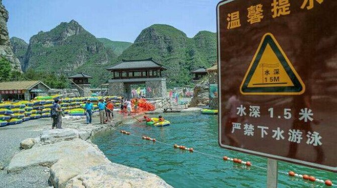 十渡风景名胜区是北京最大的自然风景区,隶属北京市房山区的十渡镇。十渡景区水体的重要组成部分是拒马河,河道九曲十八弯,素常平静温和,涓涓流淌。远古的拒马河河水很大,河上不能架桥,每拐一个大弯、进一个村庄就有一个渡口,在一渡至十渡20千米内共有10个弯,也就有10个渡口,十渡也就由此而得名。这次我们几个小伙伴从市区历经三小时来到了十渡中的三渡------乐谷银滩风景区。