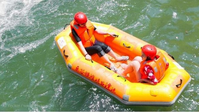 终于于坐在皮筏艇上,开始了传说中的漂流,这里的漂流并没有想像中的那么平缓,,貌似有七八个大激流,我们从头到脚全都湿身了~~~~(>_<)~~~~(所以一定要带一套轻便的服装以及一套替换衣服,不然就只能暴晒下自然烘干啦)。