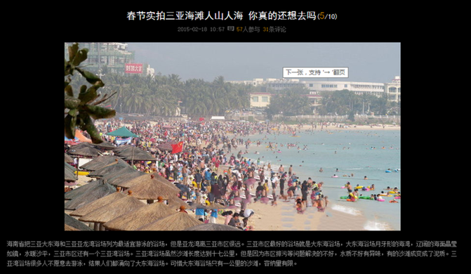 这是凤凰网2017年春节的新闻,看到上图是不是觉得呼吸都不顺畅了,甚至打消了要来三亚的念头