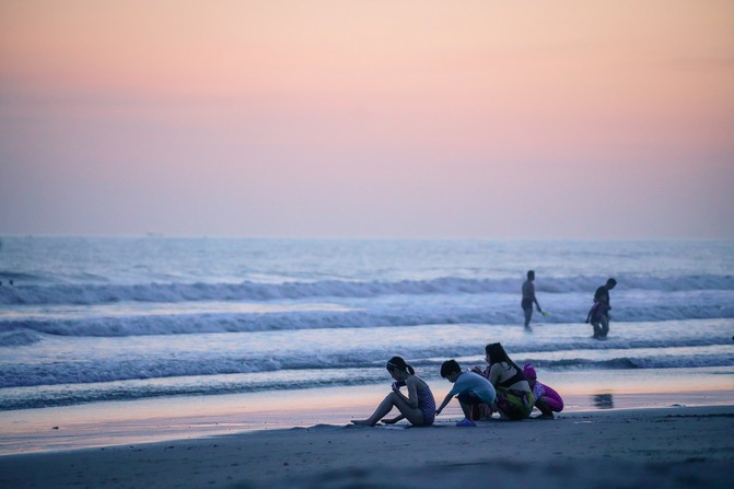 这块区域,也是看日落的好地方,太阳落下了海平面,整个三亚都变得特别凉爽,这时候在沙滩上和家人一起吹着海风,你会觉得你来三亚的每一分机票都花得不冤枉。这是和繁杂喧闹的城市完全不同的两个世界。