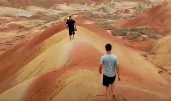 8月28日,甘肃省张掖市七彩丹霞风景区特级保护区遭多人破坏,破坏者直接踩踏扬灰,还通过抖音视频发布赚点击数。据了解,踏上丹霞地貌的一个脚印,要60年才可能恢复,几个游客看似很平常的踢踩动作,对于脆弱的丹霞地貌,将是难以挽回的毁坏。