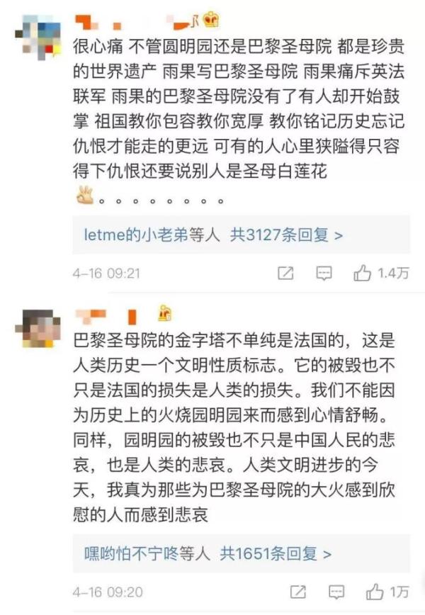 今天,与巴黎圣母院大火相关的话题,几乎占据了整个微博热搜,最热门的评论里,是针锋相对的观点,有人为文明瑰宝痛惜,也有人以爱国之名叫好。