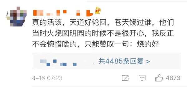 如今昔日的强盗也体会一把中国的悲痛,有道是天道好轮回,试问苍天饶过谁。只想表示干的漂亮!烧的好!