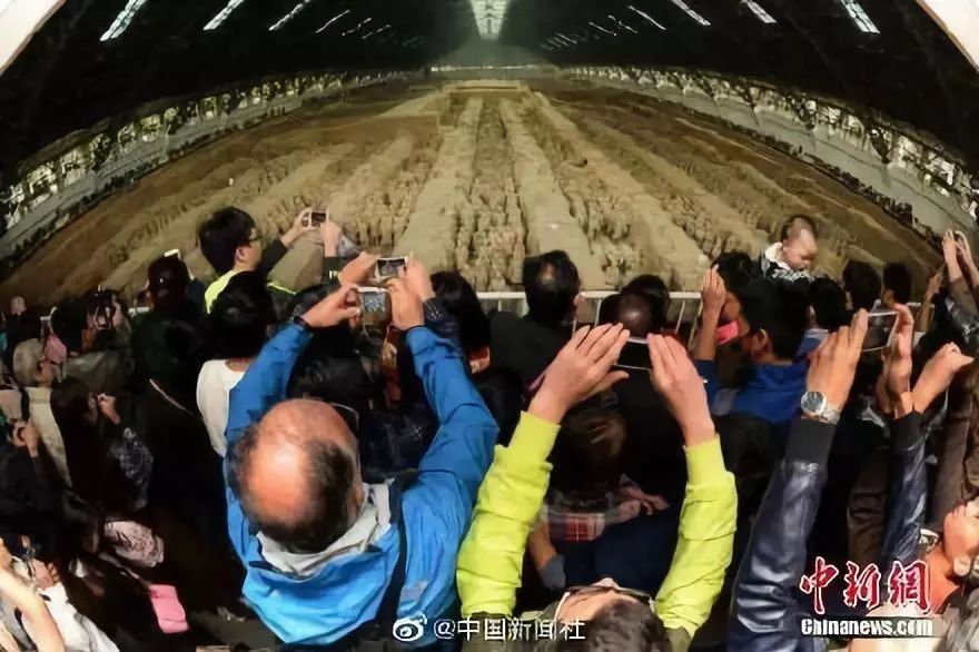 ▲ “十一”黄金周的兵马俑。(图片来源:中新社)