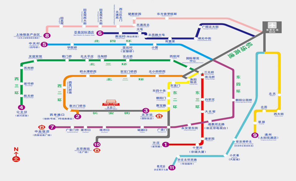机场快轨共设4站,东直门、三元桥、3号航站楼、2号航站楼