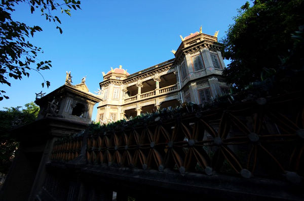 建于1922年的金瓜楼,其“金瓜”屋顶造型属拜占庭风格,是鼓浪屿建筑的特色。外部采用中国传统装饰工艺,内部中西结合,有中国传统的厢房、中厅和西洋壁炉、宽廊等。它的建筑门楼最为精巧独特,分为两层,运用中国歇山顶手法,重檐翘角,打扮得像城门一样,门穹蓝天高悬,足具气派,是鼓浪屿建筑中独具风采的门楼之一。