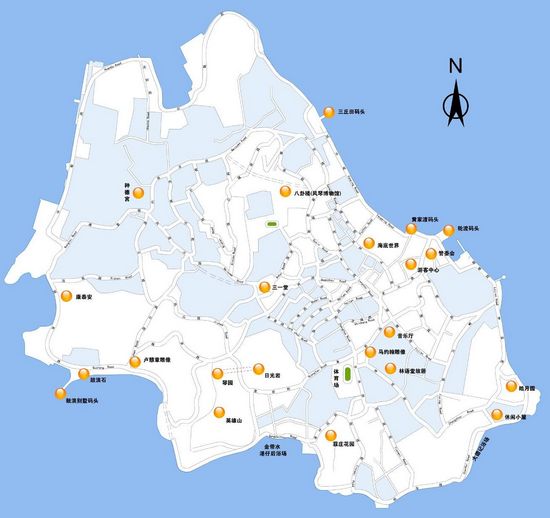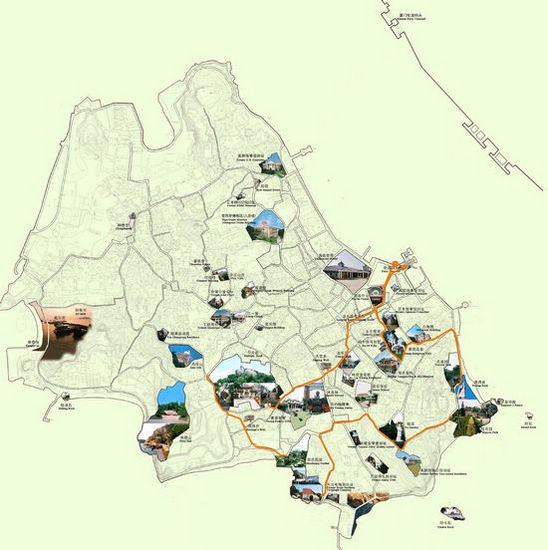 鼓浪屿位于福建省厦门岛西南隅,与厦门市隔海相望。原名圆沙洲、圆洲仔,因海西南有海蚀洞受浪潮冲击,声如擂鼓,明朝雅化为今名。由于历史原因,中外风格各异的建筑物在此地被完好地汇集、保留,有“万国建筑博览”之称。龙头路商业街还有张三疯奶茶、赵小姐店铺、三老肉脯干等诸多火热商铺,小岛还是音乐的沃土,人才辈出,钢琴拥有密度居全国之冠,又得美名“钢琴之岛”、“音乐之乡”。
