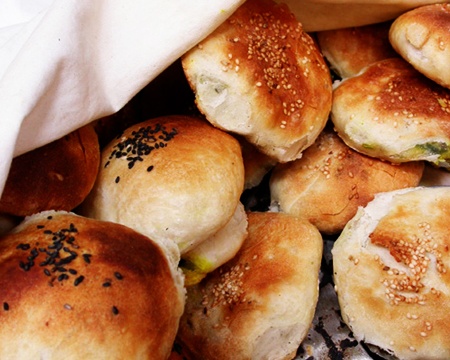 有葱油香饼和甜味两种,有点类似于北方的缸炉烧饼。