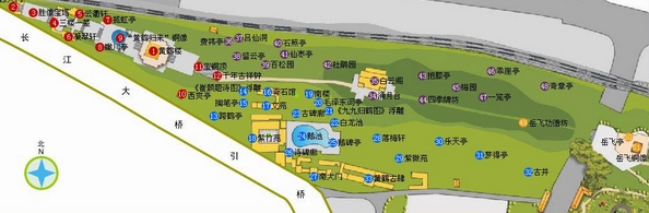 昔人已乘黄鹤去,此地空余黄鹤楼。黄鹤一去不复返,白云千载空悠悠……黄鹤楼始建于三国时期吴黄武二年(公元223年),屡毁屡建,现在的黄鹤楼于1985年建成。飞檐5层,攒尖楼顶,金色琉璃瓦屋面,通高51.4米,底层边宽30米,顶层边宽18米,全楼各层布置有大型壁画、楹联、文物等。楼外铸铜黄鹤造型、胜像宝塔、牌坊、轩廊、亭阁等一批辅助建筑,将主楼烘托得更加壮丽。是武汉市的标志建筑。