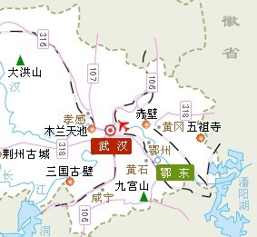 从地图上看,武汉形如一只自西向东翩翩起舞的彩蝶。